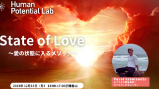 12月18日(月)に、鎌倉山にて、Human Potential Lab x Love My Nature が共同で開催する1 day ワークショップ「State of Love 〜愛の状態に入るメソッド〜」−ドイツより量子力学 x スピリチュアリティ探究者が来日!愛の状態に入るメソッドを体験する1Dayリトリート−。(詳細はこちら)